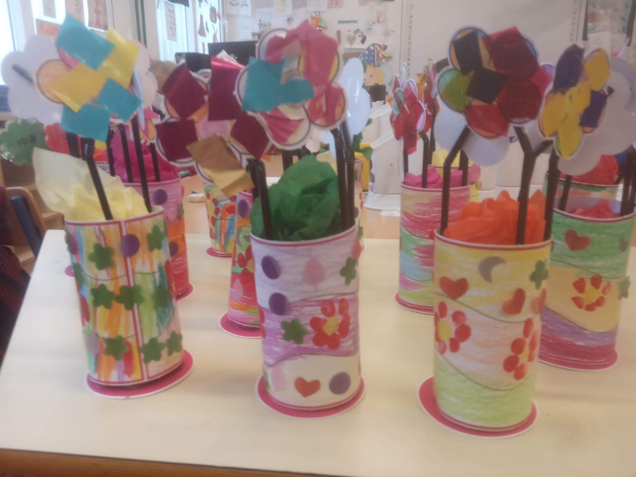 El pasado viernes día 30 de abril, con motivo del día de la madre, el alumnado de infantil preparó diversas manualidades, como lapiceros, portarretratos, flores, joyeros, etc.